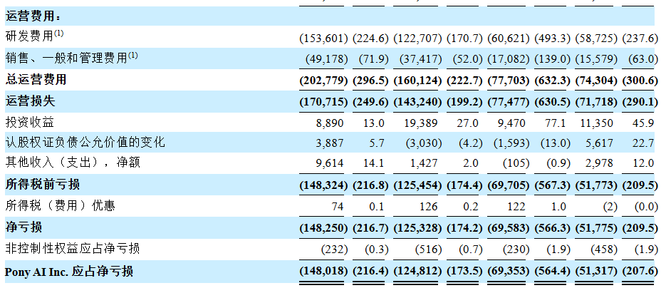 In terms of research and development investment, Pony Wisdom has invested $154 million (about 1.1 billion yuan) in 2022, $123 million (about 880 million yuan) in 2023, and $58.725 million (about 420 million yuan) before June 30, 2024.