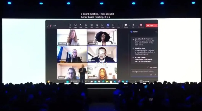 然后,医生们会在 Teams 会议中讨论这些病例,他们可以专注于讨论而无需记笔记,因为 AI 会记录所有详细内容。结束后,这位医生还是一位老师,她希望将讨论内容用于教学。她可以将笔记转成 Word 文档,再转成 PowerPoint,用于课堂上。这种简单但高影响力的工作流,通过将 AI 嵌入到流程中得以实现。