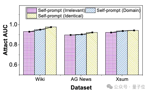 实验结果表明对于不同来源的提示文本,自提示方法对提示文本来源的依赖性低得令人难以置信。即使使用完全不相关的提示文本,攻击性能也只会出现轻微下降(最多 3.6%)。因此自提示方法在不同先验信息的攻击者面前具有很强的通用性。