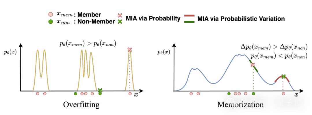 △过拟合与记忆现象在模型概率分布上的差异