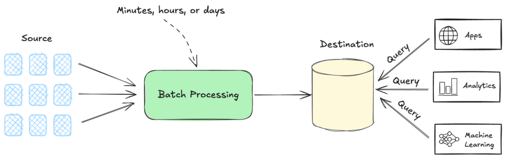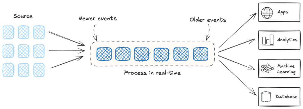Although this type of batch processing is not applicable in the real world, it is the way many systems operate today. Batch processing was born out of outdated technical limitations that forced applications to rely on static, delayed data. This approach may be the only viable solution when computing, memory, and storage are limited, but it is completely at odds with the way we interact with the real world, much less the way AI works.