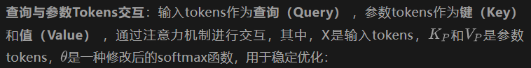 Parameters Tokens: The Q, K and V projection layers of the original transformer model are no longer fixed matrices, but are converted into a set of vectors (tokens), such as: