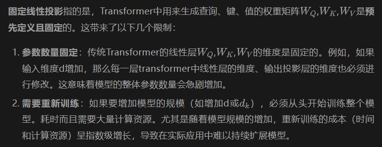 Traditional Transformer relies on a fixed number of linear projections when dealing with the interaction between tokens and parameters, which limits the scalability of the model. This statement itself is difficult to understand, so the shortcomings of the architecture will be discussed in detail next.