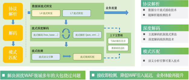 At the same time, another new technological breakthrough of Lei Chi 30 - streaming semantic analysis technology, has overcome the "big package bypass" problem that has plagued the industry for many years. The core breakthrough of this technology is to realize a number of innovations such as data fragment stream receiving technology, deep decoding stack snapshot technology, semantic analysis engine reentrant technology, and transform protocol parsing, decoding and pattern matching into a stream detection mode of "receiving, detecting and forwarding". Not only effectively solves the problem of "big package bypass";, but also significantly reduces the detection delay without sacrificing the detection effect, providing users with a better business experience.