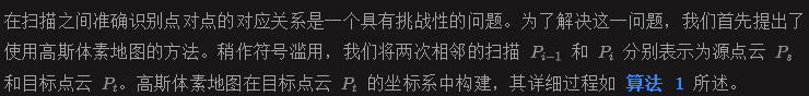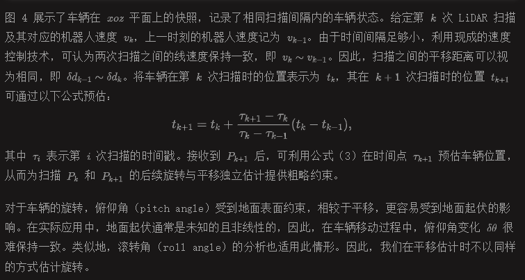At the front end, we achieve decoupling of rotation and migration estimates between successive scans through forward position prediction. This is achieved by eliminating translation differences between scans.