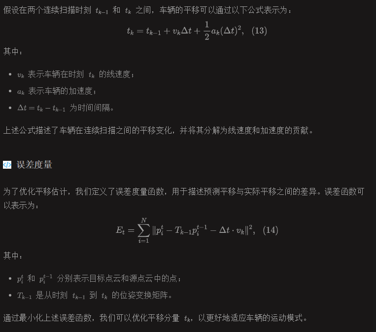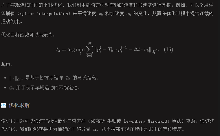 After the forward position prediction, the translational component tk of the vehicle has been preliminarily estimated. However, due to the effect of rough terrain on pose, direct use of the initial predicted translation may lead to the accumulation of estimation errors. Therefore, we propose a continuous time-based translation optimization method to further improve the accuracy of pose estimation.